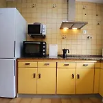 Eine voll ausgestattete Küchenzeile mit einem Wasserkocher, einem Kühlschrank und einem Herd gehört zur Ausstattung der Casa Los Naranxales Gijon für Selbstversorger.